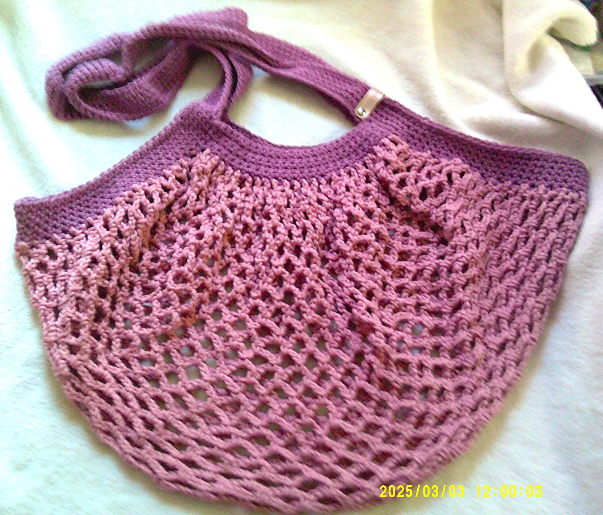 A beautiful bright crocheted mesh bag, ideal for the beach or market.